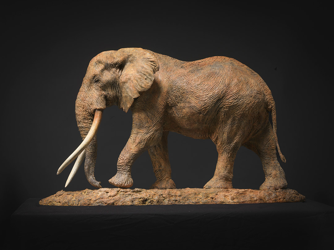 Craig – Amboseli Bull Elephant Species: ElephantEdition: 1/10Height: 58 cmWidth: 32 cmLength: 100 cmWeight: 79.4 kgMaterial: BronzeAvailable View Spin