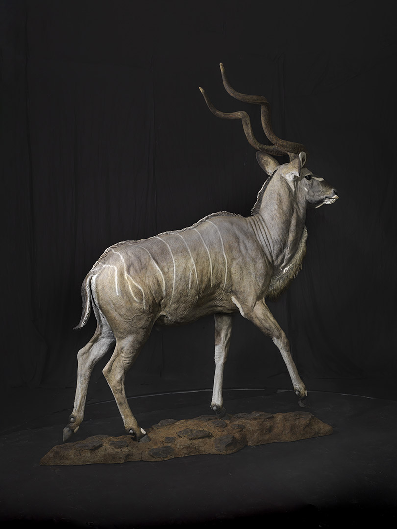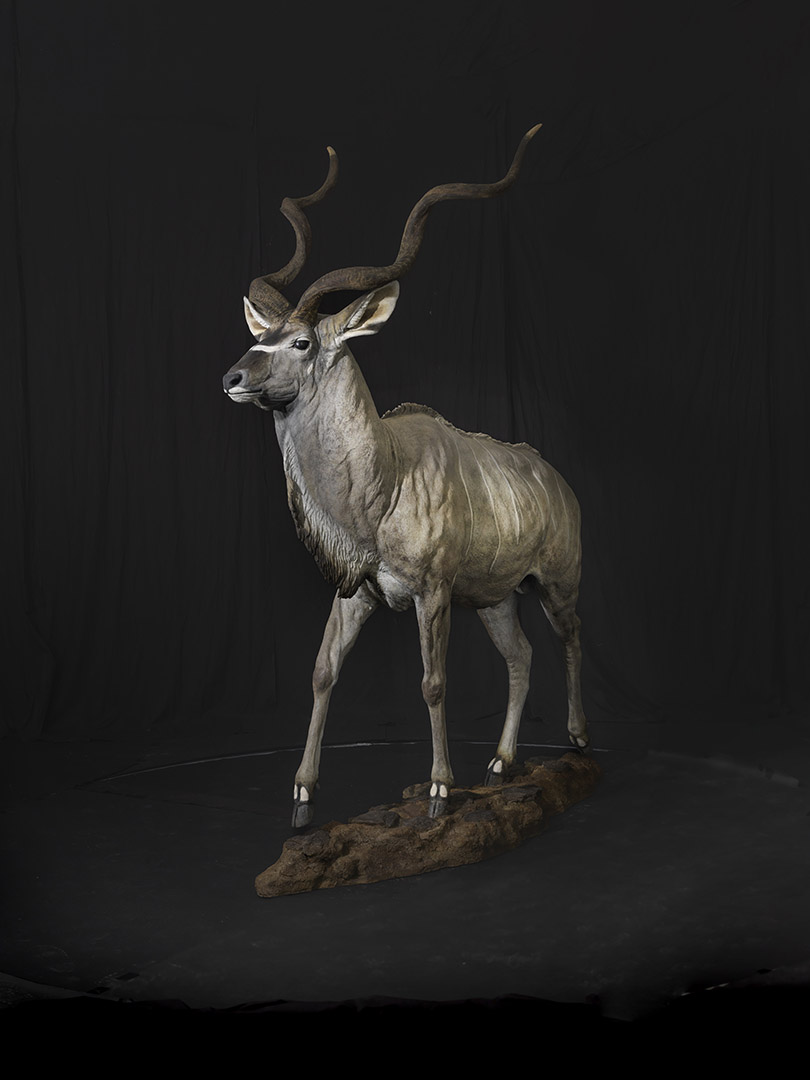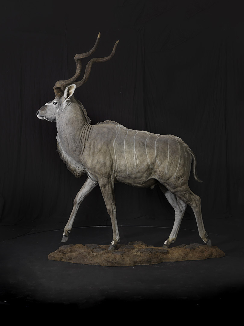 East African Greater Kudu – Masailand Species: Greater KuduEdition: 1/5Height: 275 cmWidth: 125 cmLength: 230 cmWeight: kgMaterial: BronzeAvailable View Spin