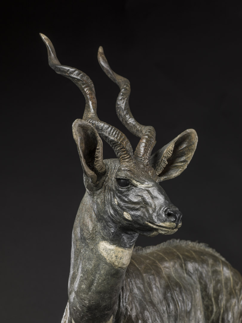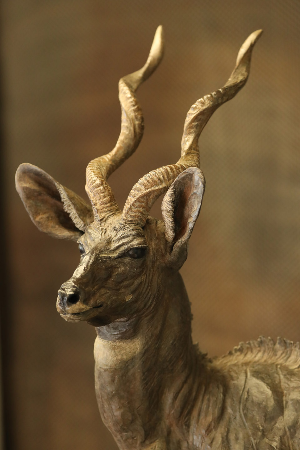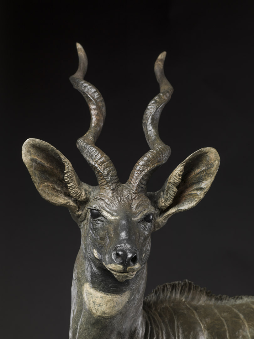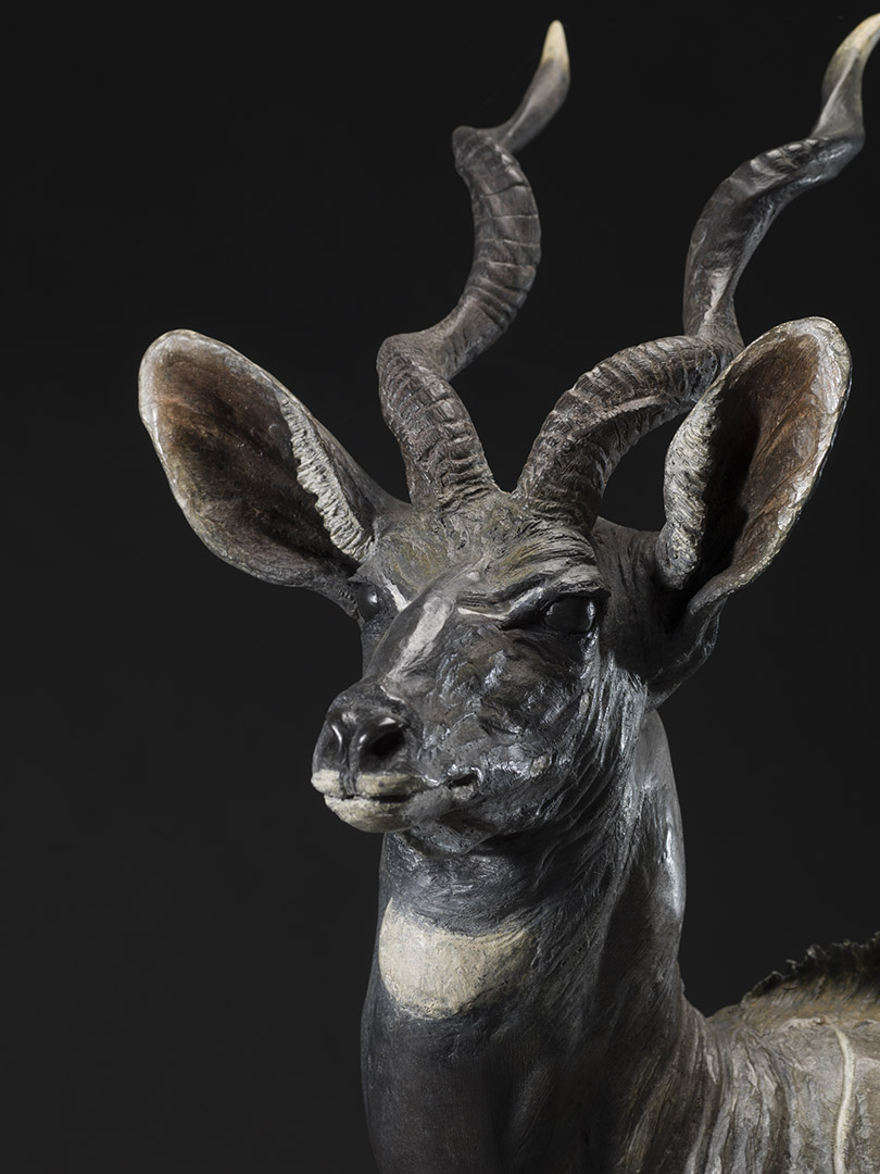 Lesser Kudu Bull Species: Lesser KuduEdition: 10Height: 79.5 cmWidth: 32 cmLength: 58 cmWeight: 26.2 kgMaterial: BronzeAvailable View Spin