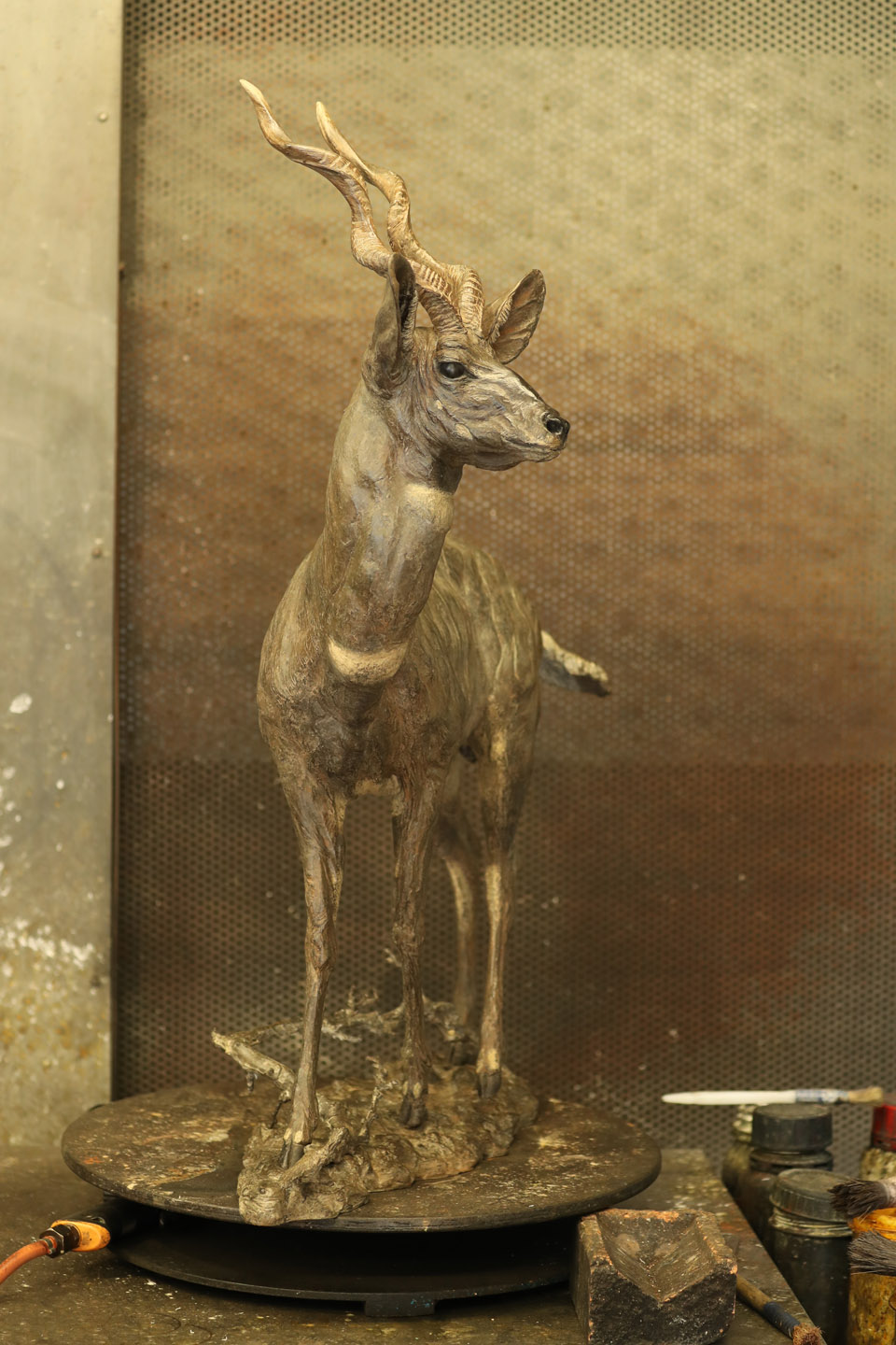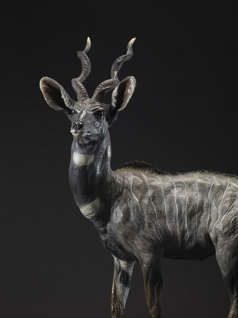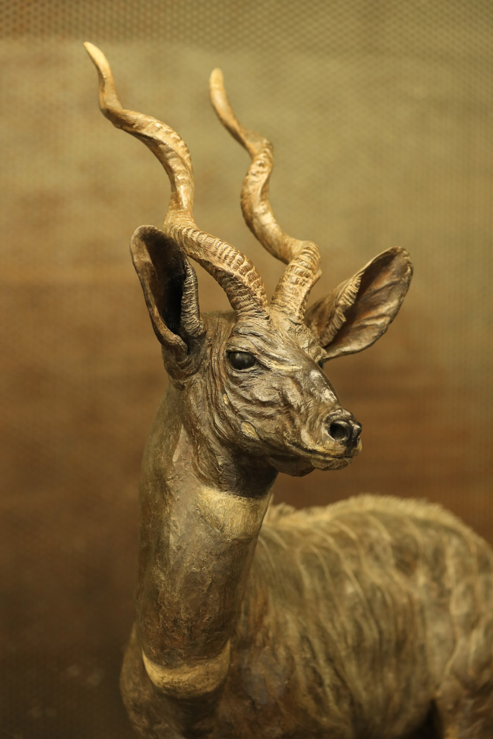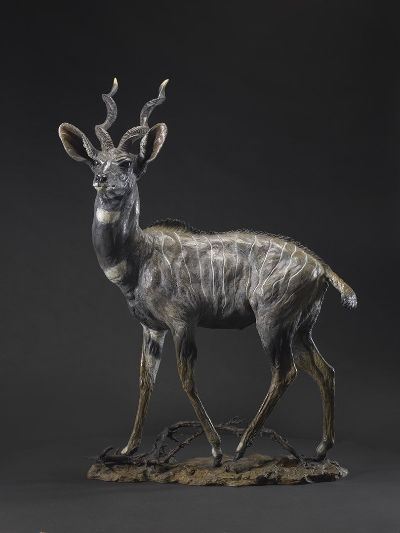 Lesser Kudu Bull Species: Lesser KuduEdition: 10Height: 79.5 cmWidth: 32 cmLength: 58 cmWeight: 26.2 kgMaterial: BronzeAvailable View Spin