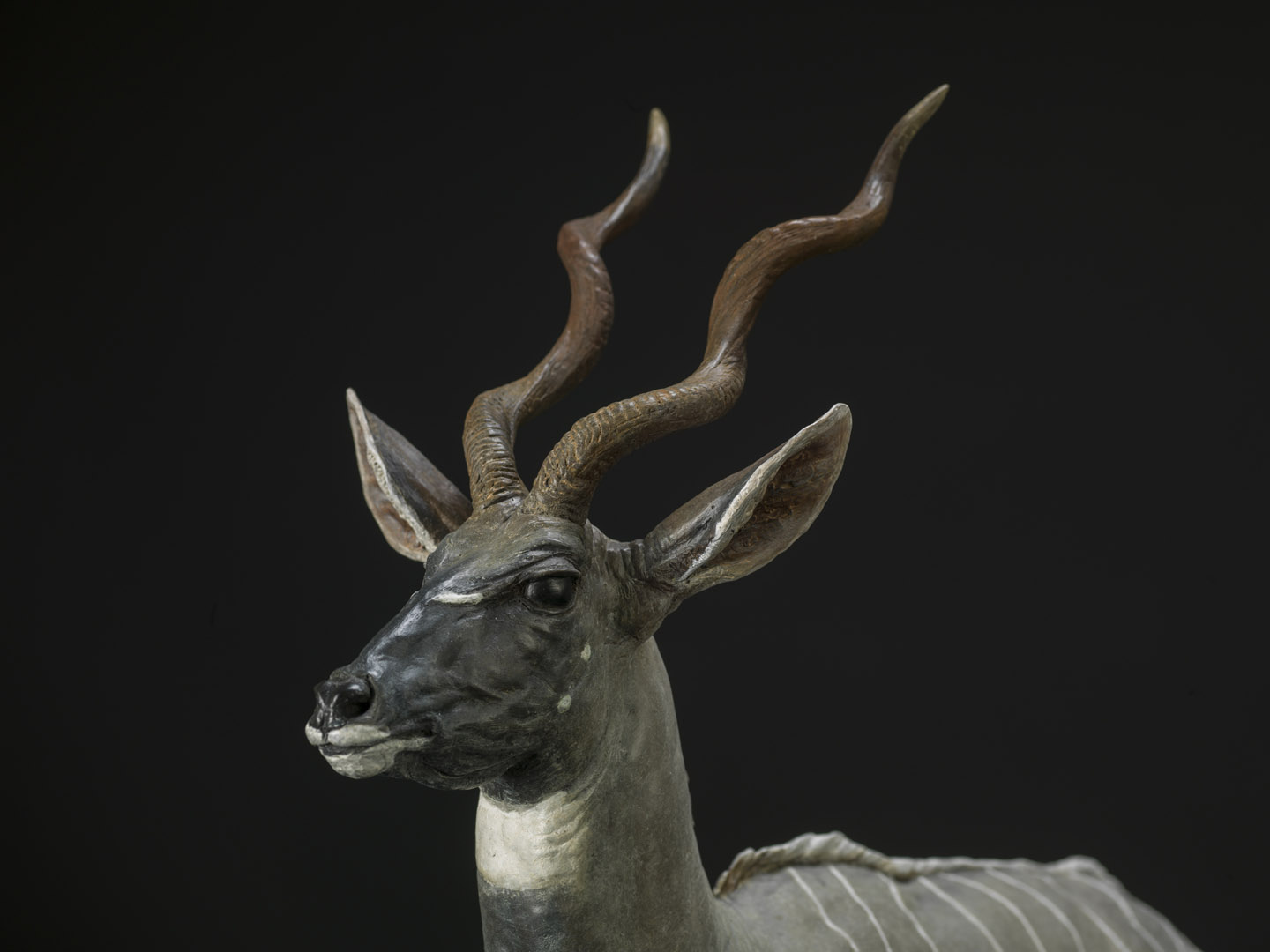 Masailand Lesser Kudu Species: Lesser KuduEdition: 10Height: 55.7 cmWidth: 15 cmLength: 52 cmWeight: 9.4 kgMaterial: BronzeAvailable View Spin