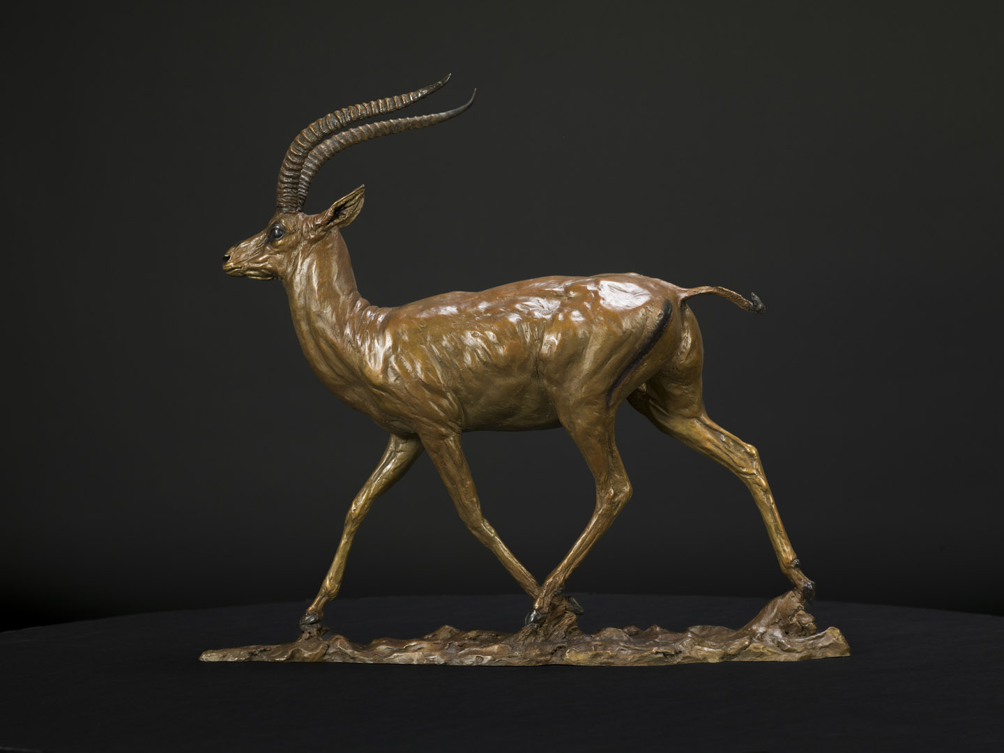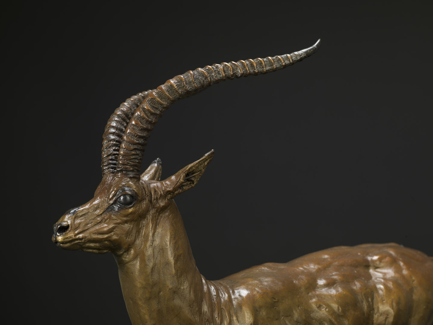 Southern Grant’s Gazelle Species: GazelleEdition: 10Height: 45.6 cmWidth: 14.7 cmLength: 51.6 cmWeight: 8.7 kgMaterial: BronzeAvailable View Spin
